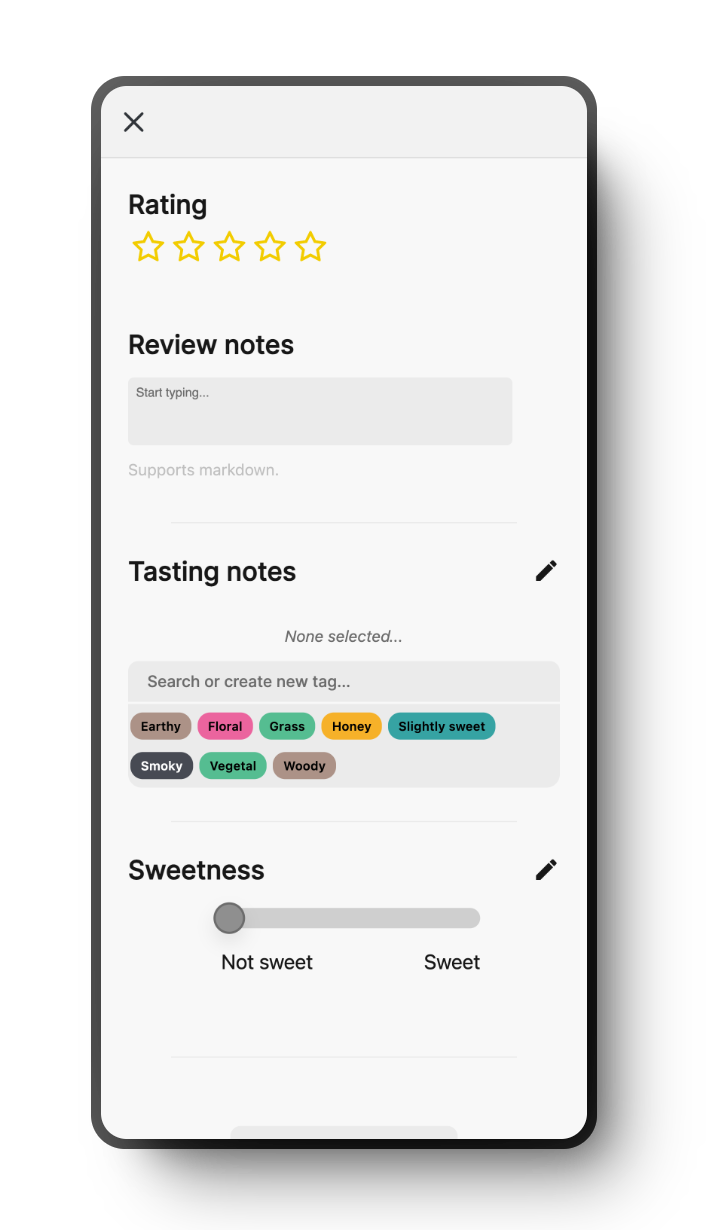 Memolli has built in templates for tea reviews, but you can also customize your own templates to suit your preferences.
